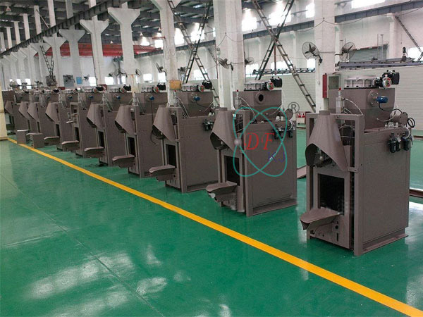 氣吹式閥口包裝機適合于流動性較好的粉末或細小顆粒(≤5mm)的包裝,利用壓縮空氣為動力。壓縮空氣通過霧化器(氣墊)使密閉容器內的物料發生流化狀態,從而達到輸送給料的作用。密閉采用氣動橡膠閥門,通過控制閥門的通流面積,以達到控制包裝的物料的給料量,實現有效和穩定的包裝精度和速度。該生產線可生產多種干粉產品:保溫砂漿,粘結砂漿,抗裂砂漿,干粉粘結劑,自流平砂漿,干粉膩子等多種干粉材料產品。