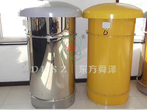 倉頂除塵器是一種圓形可拆的金屬濾筒,底板上有14個嵌入圓形孔,它設有14個濾芯,扎緊在上端1個振動器的吊架上,定時震動,使濾芯阻留下來的灰塵降落在倉內。